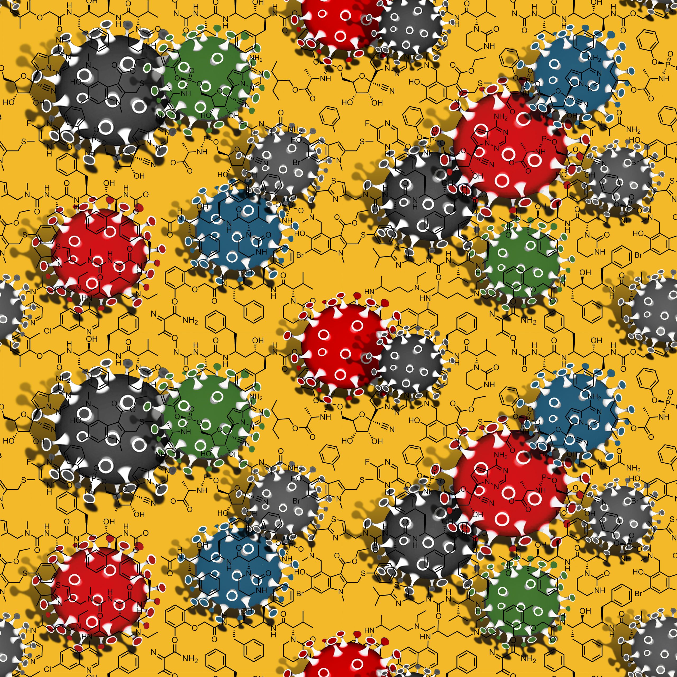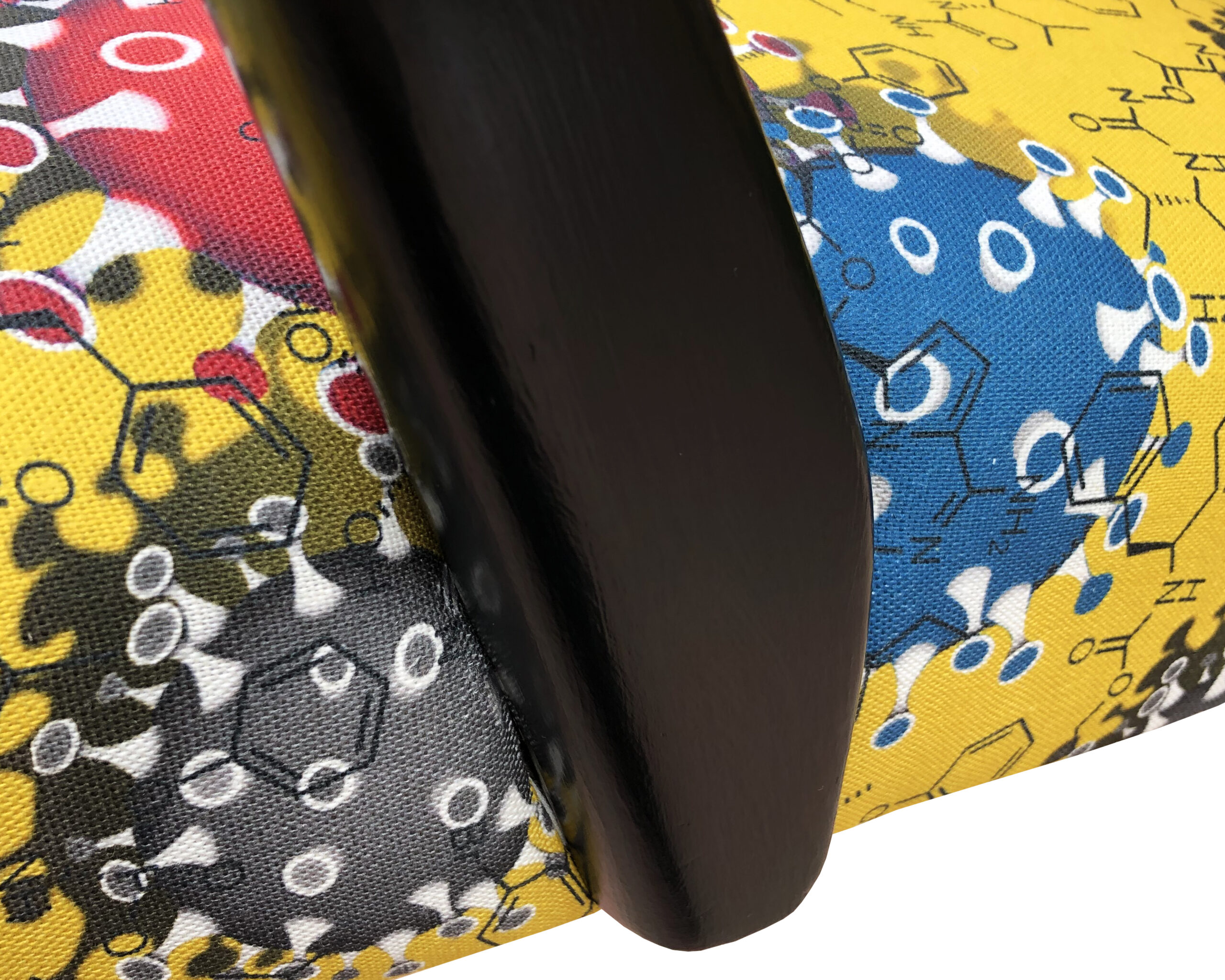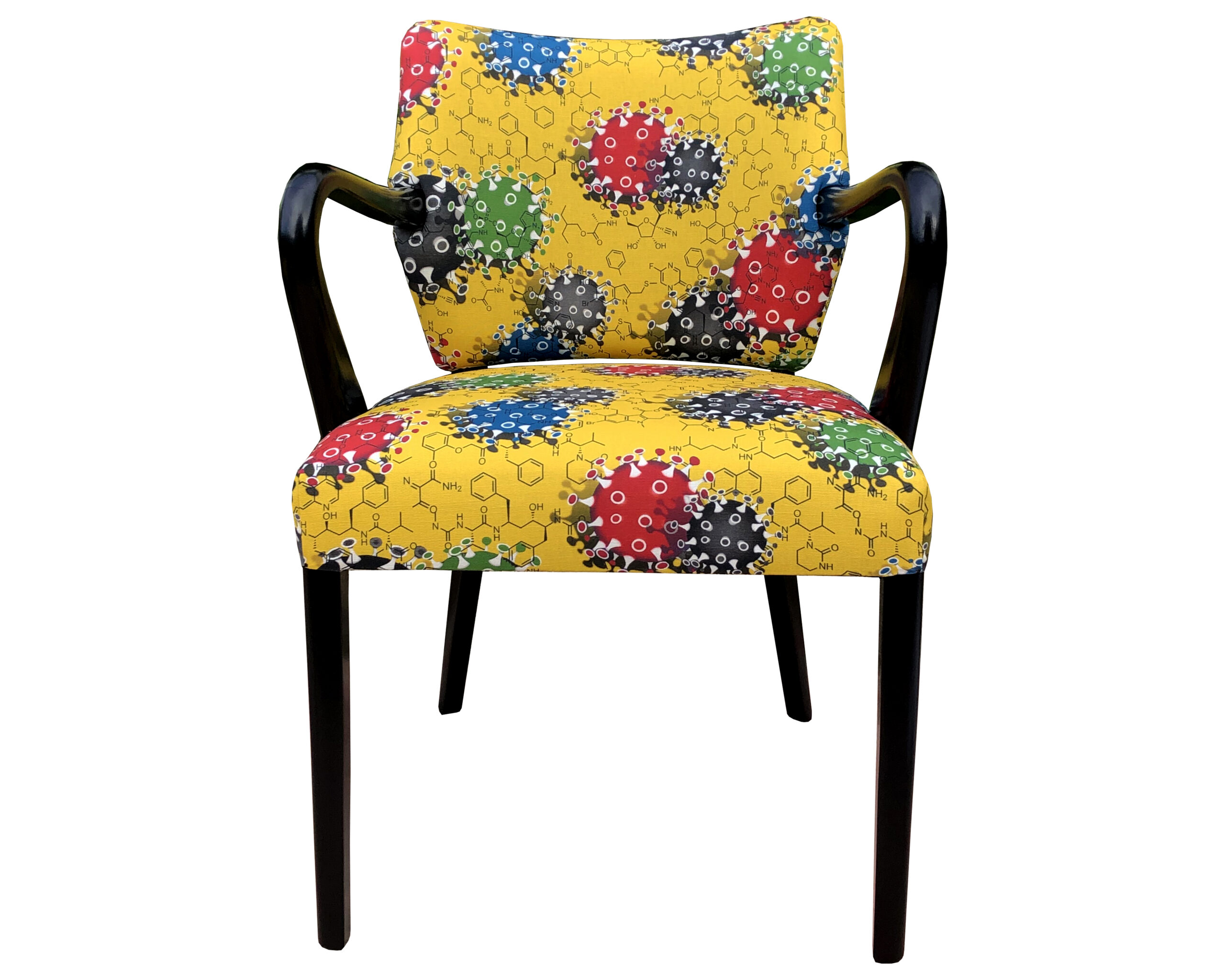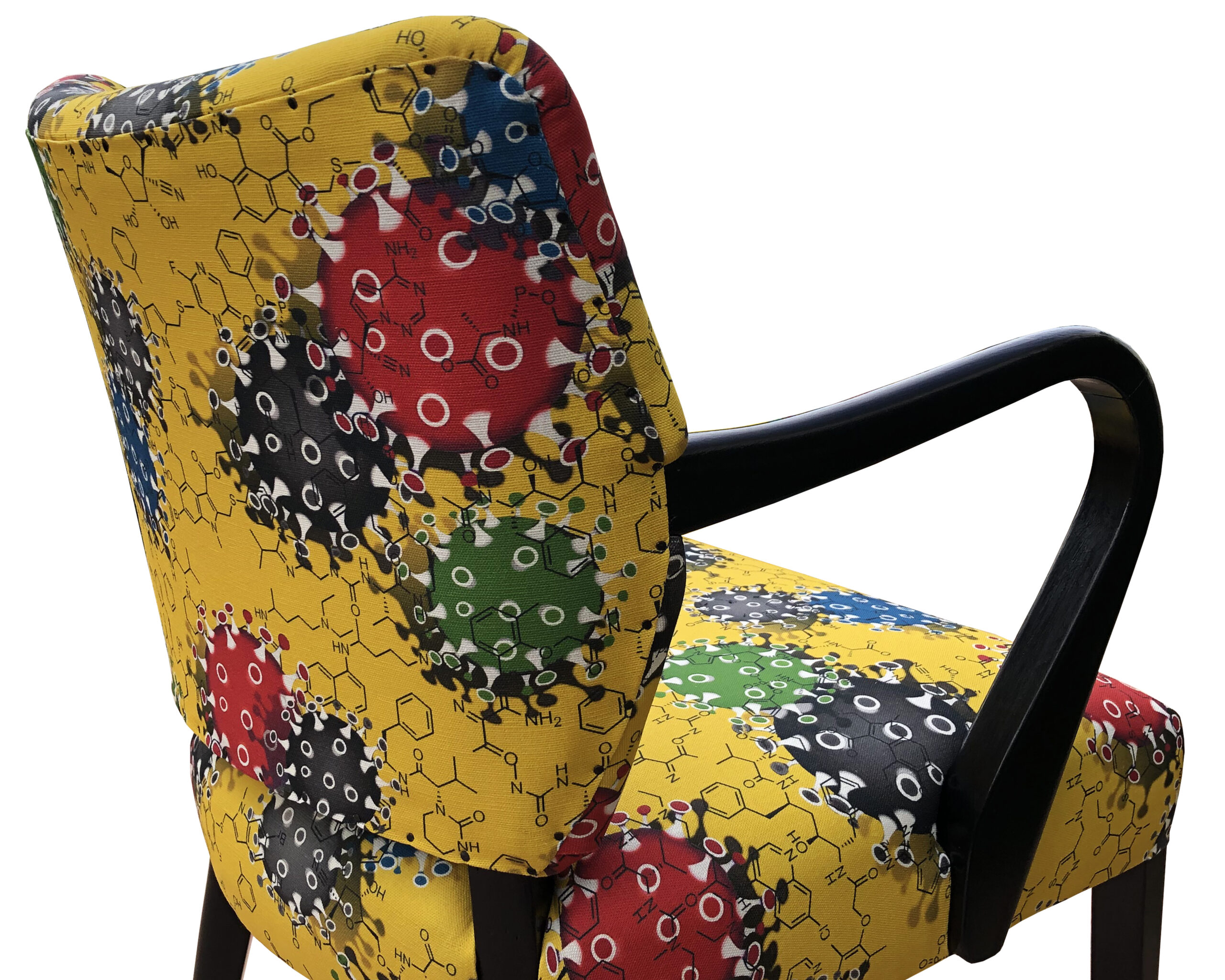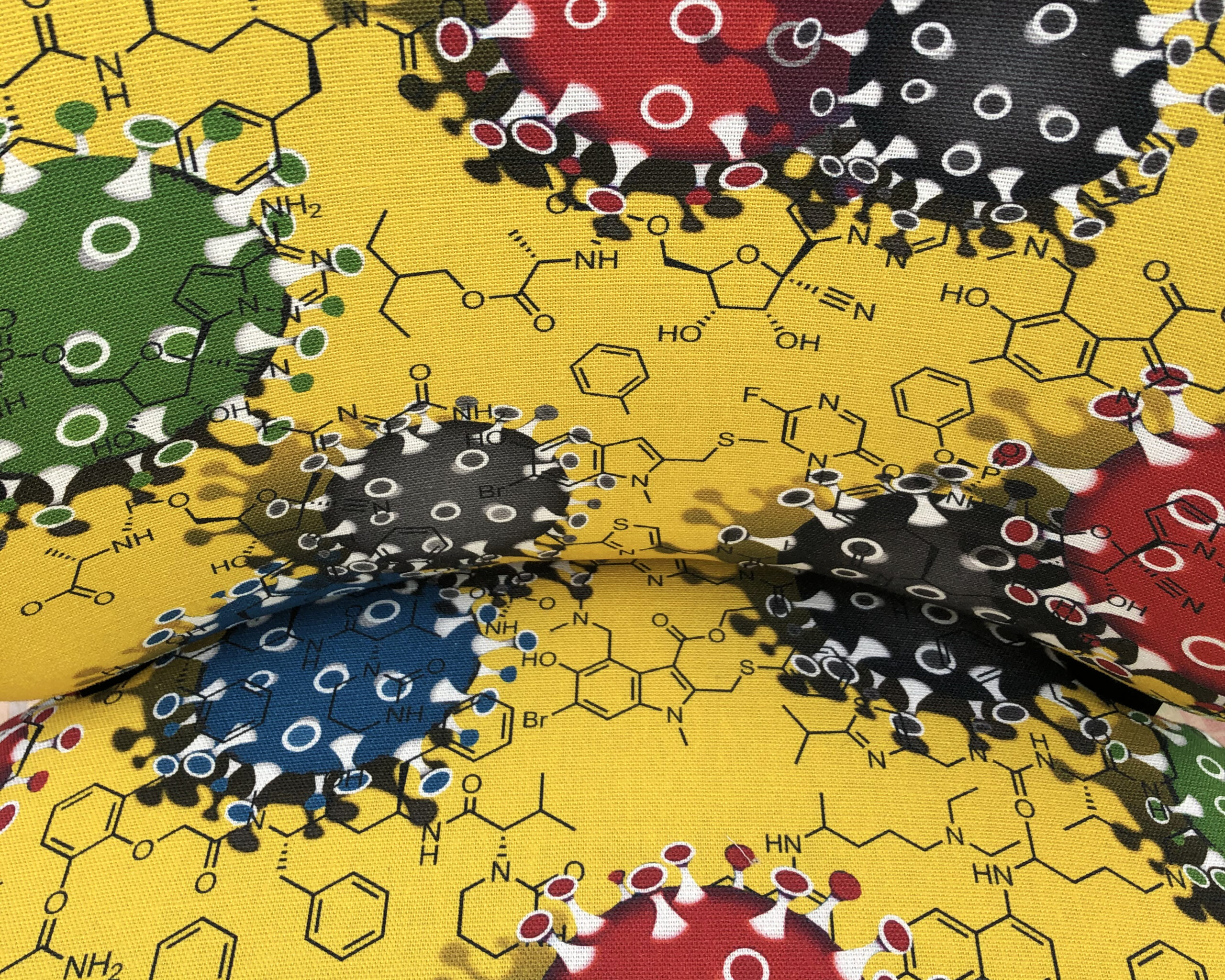 Printed on the background of this Coronavirus fabric are the chemical formuli that evenually became the vaccine.