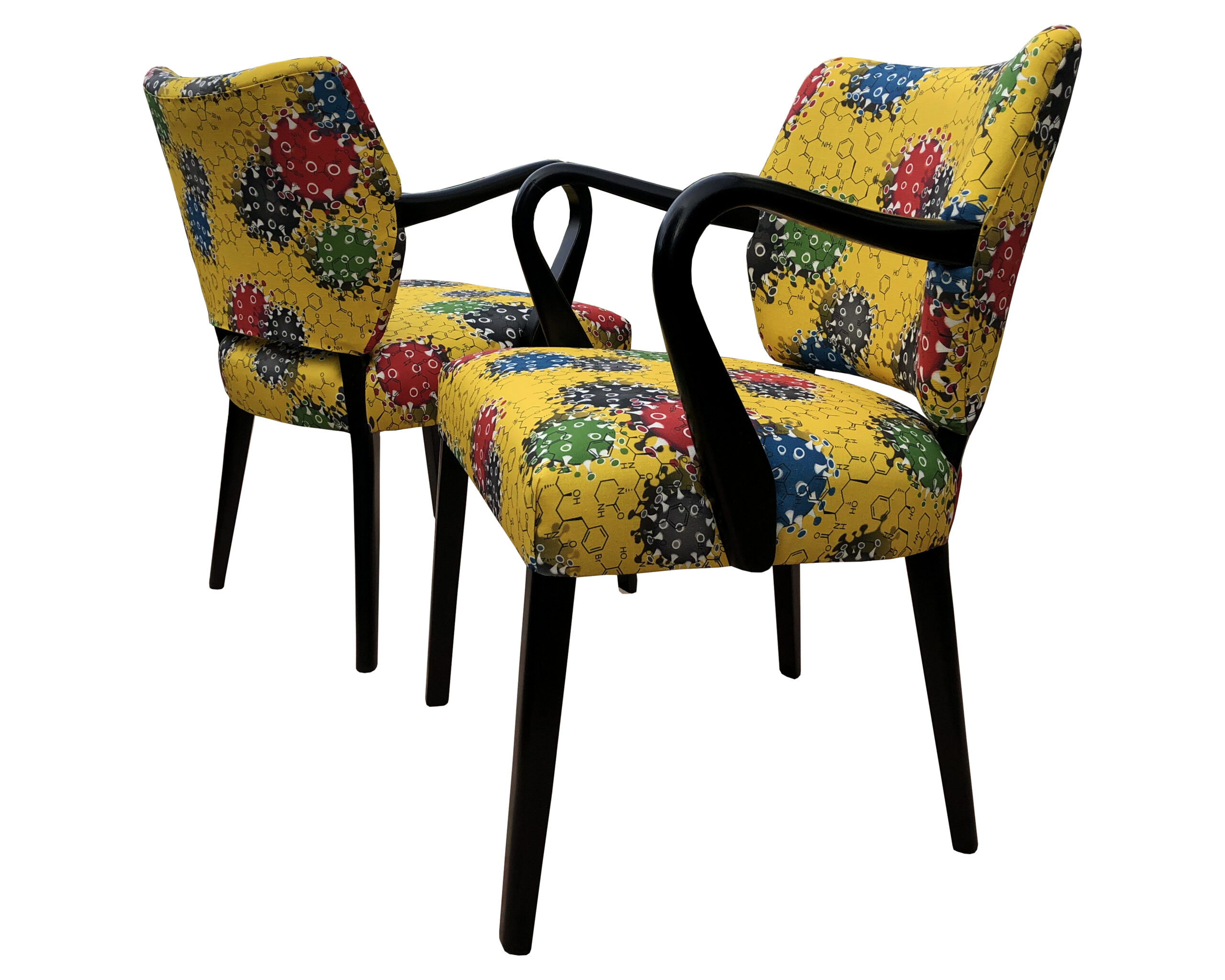 A pair of re-reupholstered second hand chairs.