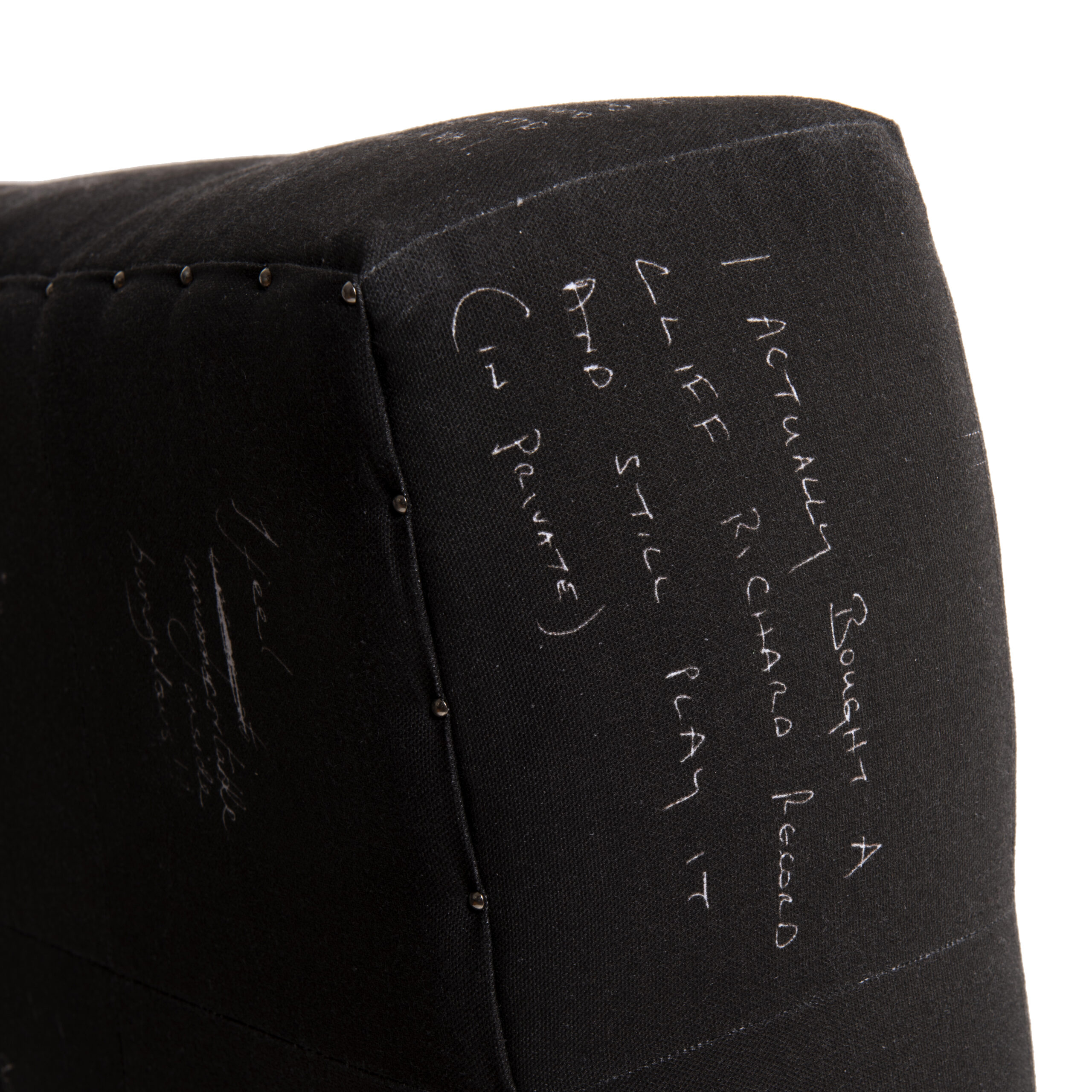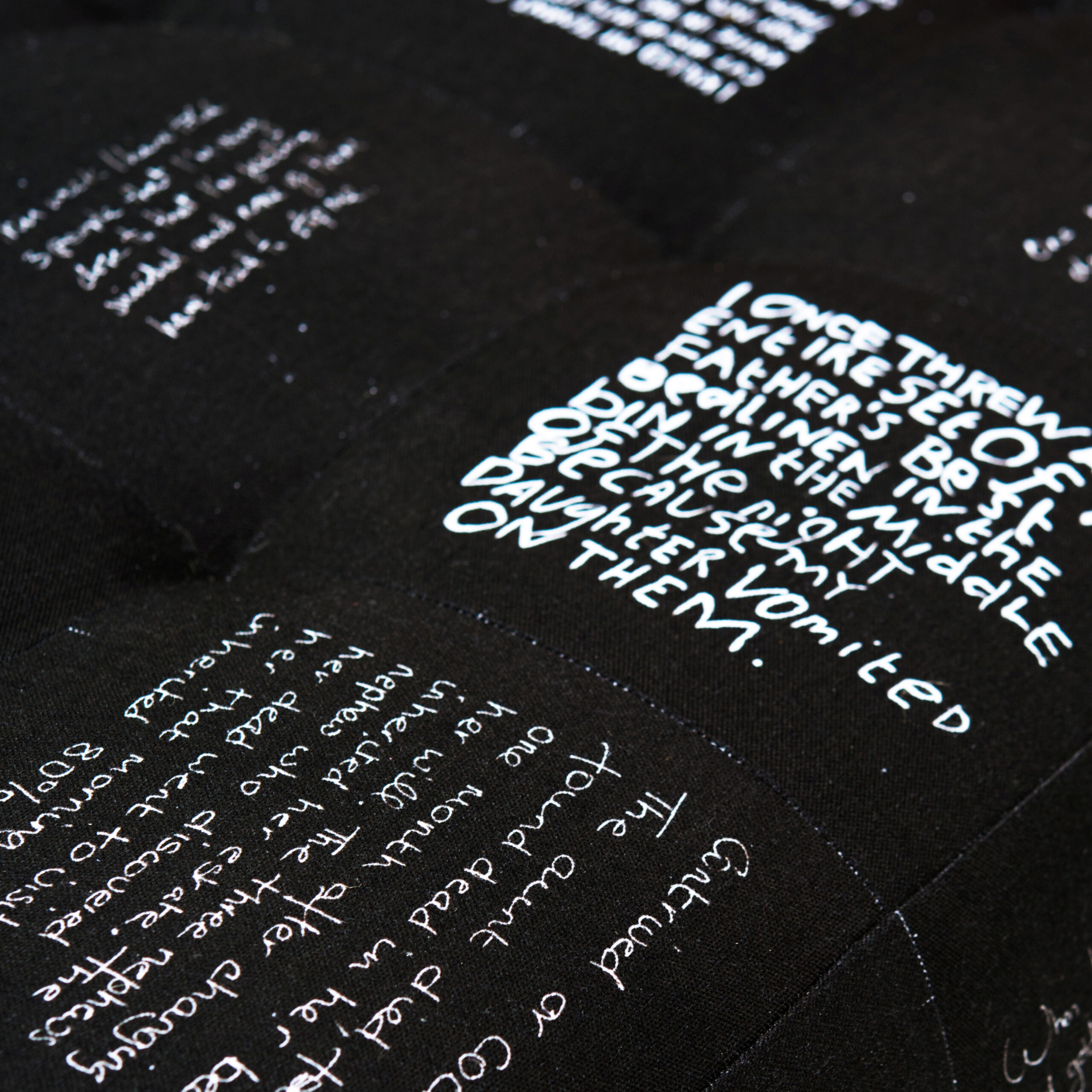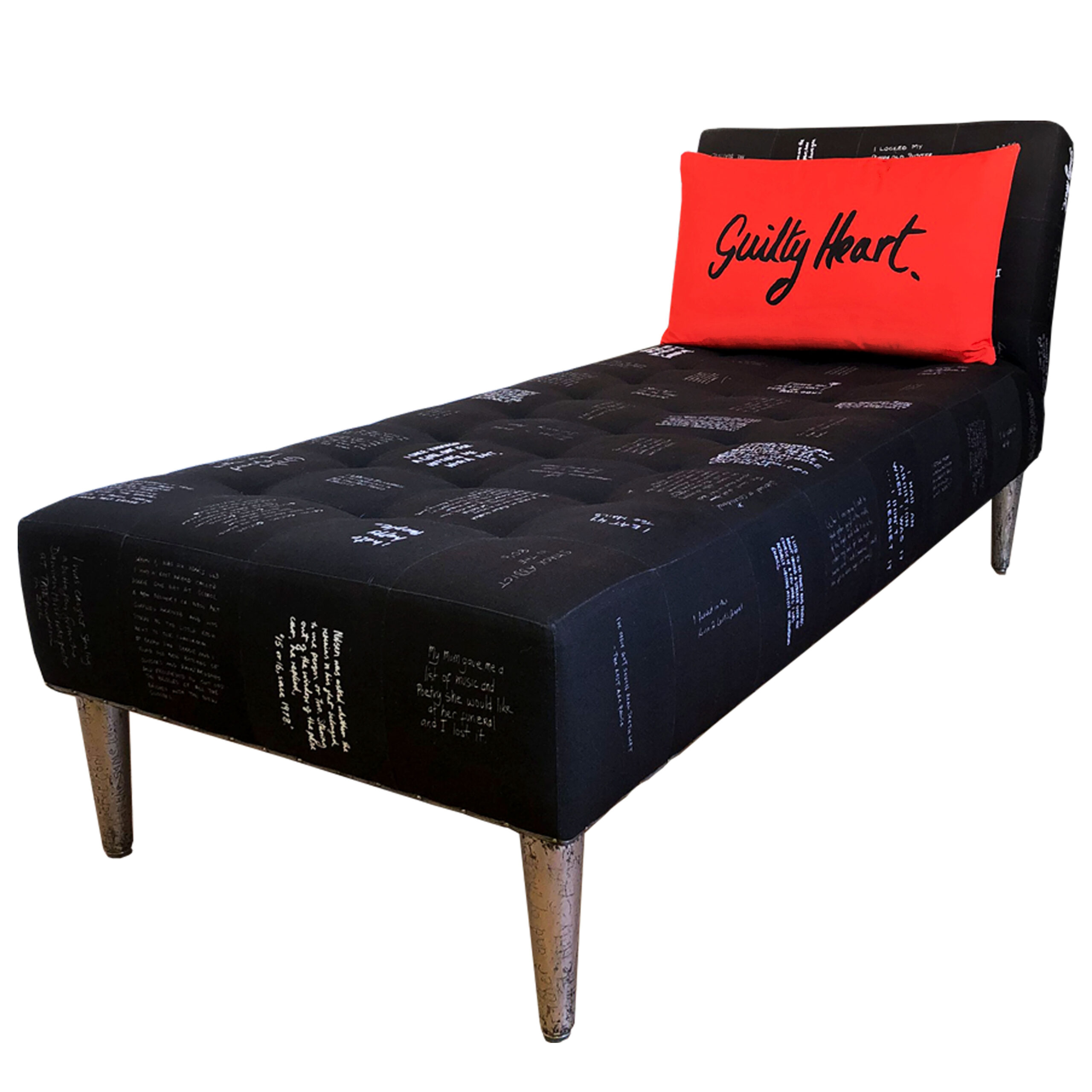 I designed and built The Confessional couch to accommodate them all in a patchwork design;adding a few notorious confessions to the mix (Yorkshire Ripper, Lance Armstrong) and finally of course, my own.