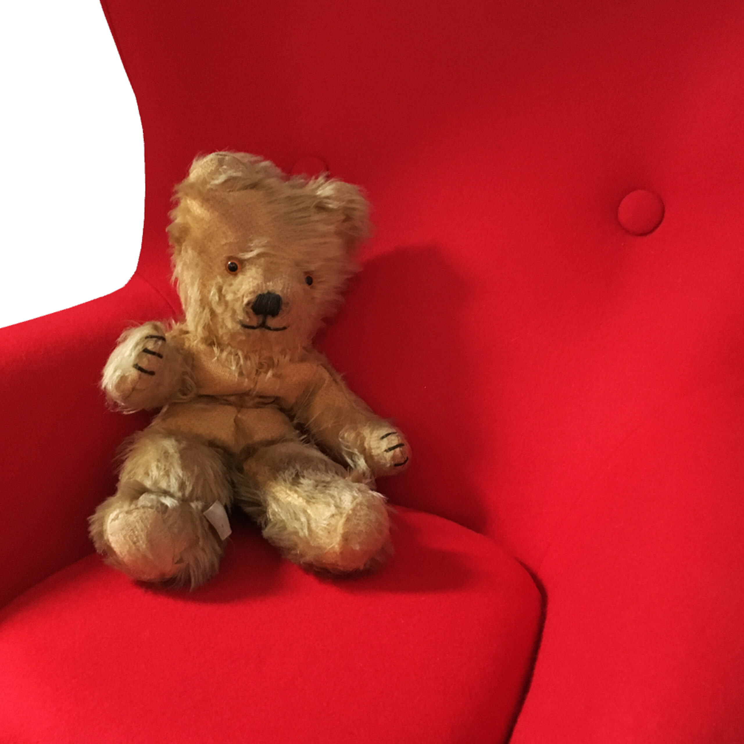 A mini egg chair upholstered in pillarbox red wool felt – yum!